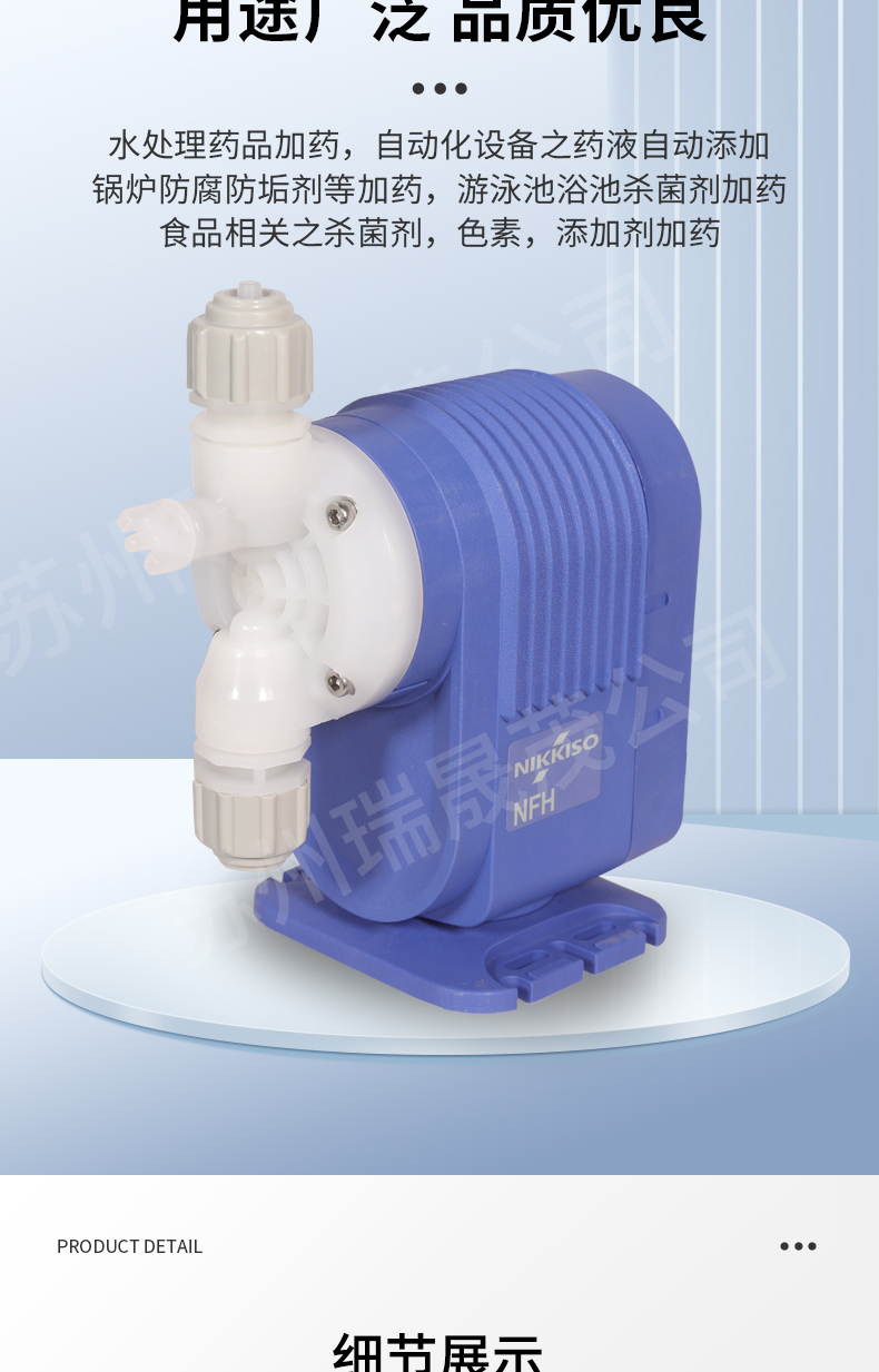NIKKISO EIKO結合電子與定量加藥機之技術,研發泛用性的電磁式加藥機,液體接觸部以優質之耐蝕材質為標準,外型精致,
