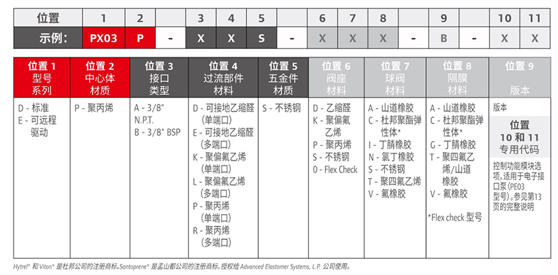 產品型號說明:PX03P-XXS-XXX-B-XX主要性能參數:1:1比率最大流量:40.1LPM進氣口(內螺紋):1/4”流體進口:3/8”,螺紋(側面或中間···