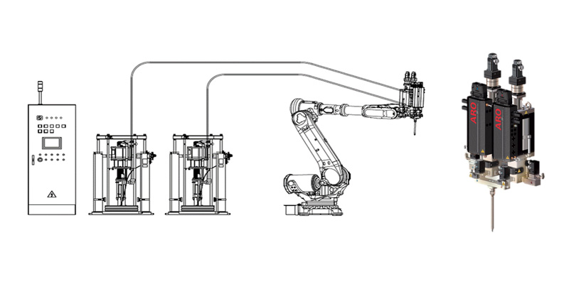 ARO雙組份定量缸涂膠系統,采用定量缸式的計量機構,標準化的系統配置,具有高效穩定的涂膠表現。
